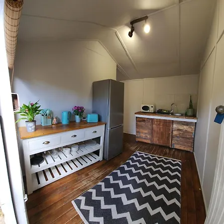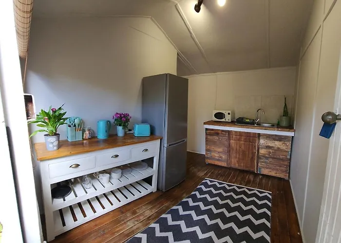 Sim, Lovely Cabin With Private Garden, dispõe de cozinha equipada, de chaleira elétrica, refrigerador e artigos de vidro.